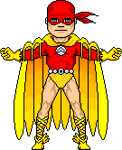 Soon after meeting the Knight and Squire, another European Bat-surrogate made his debut. This one had learned from their mistakes and his country requested that the Dark Knight train him first. (This new hero was a naturalized American citizen of an un defined European nationality.) Simultaneously, Robin had suffered a broken leg and was forced to the sidelines for six weeks. This meant the new Wingman (clad in a red and yellow costume) could serve as Batman's partner.