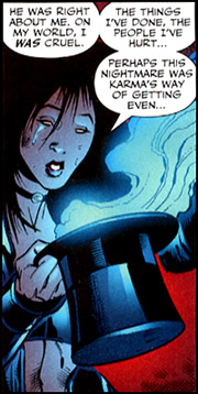 Another Crime Society member, Annataz, was killed by Superman Prime. Prime used Annataz to help him hold Mr. Mxyzptlk captive. She turned on Prime and freed Mxyzptlk. Just before she was killed, she repented. (Countdown #23)