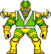 Father Time used a device engineered from Atomic Knight armor — an Orphan Box— to convert Gonzo into raw information. He planned to use it against Gonzo's creators if the time ever came. During most of this time, Father Time had appeared as a white haired old man, which was a disguise. Just before Gonzo's defeat, he "molted" away this form to reveal his true African-American appearance. Father Time then slipped out the back door along with Replicant, the Bride and their soldiers.