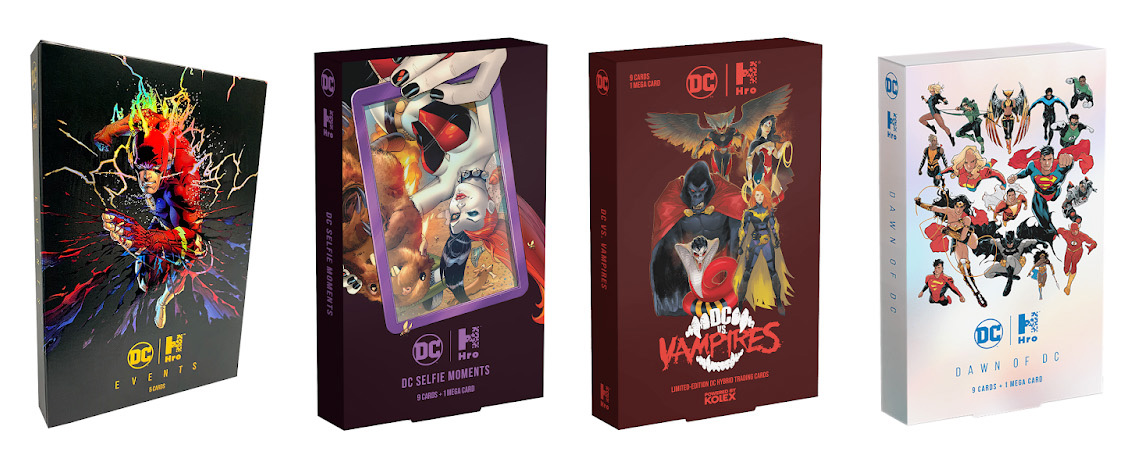 Limited edition collection packs: Events, DC Selfie Moments, DC vs. Vampires and Dawn of DC.Limited edition Vintage DC Comic Covers