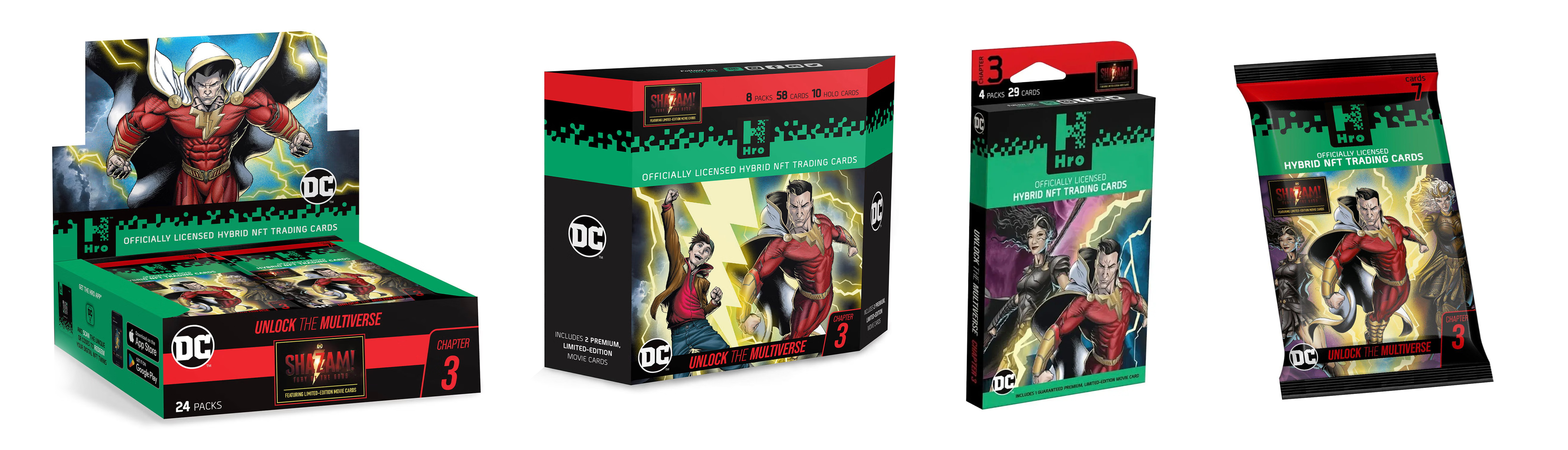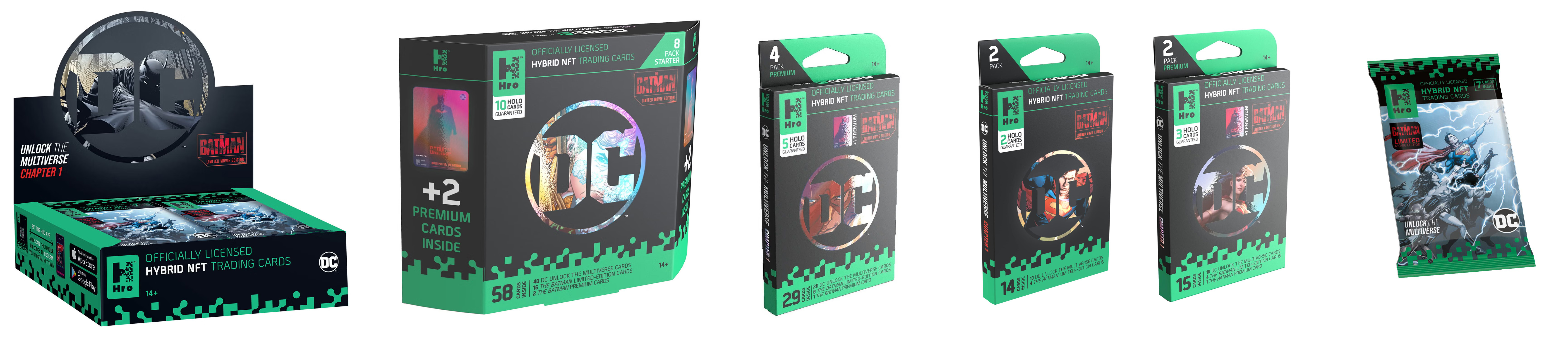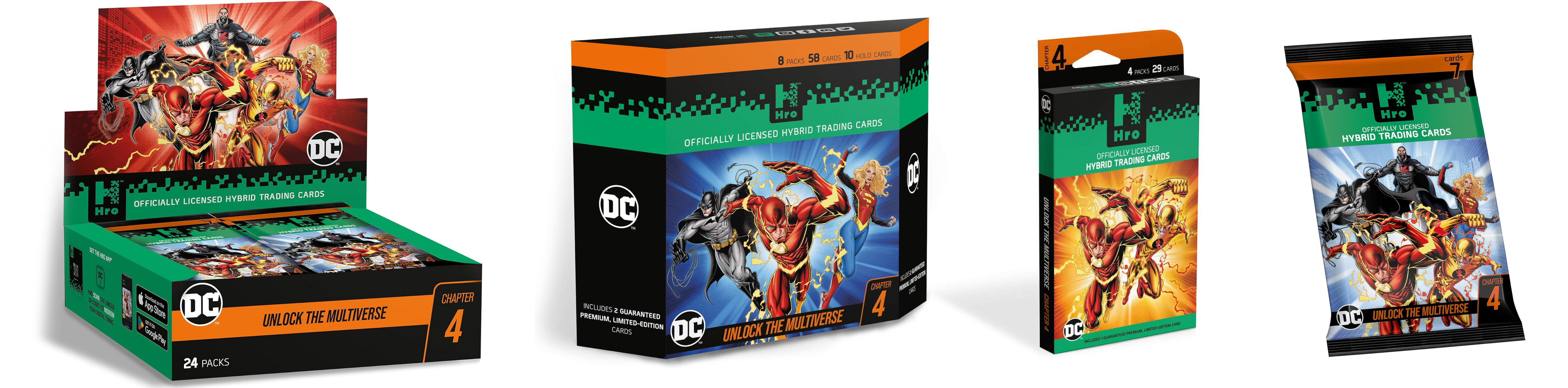 DC Unlock the Multiverse: Chapter 1 — display unit, 8-pack, 4-pack, 2-packs and single packCards from the film subsets bear a slightly different design. From Chapters 1-4, The Batman, Black Adam, Shazam: Fury of the Gods and The Flash.