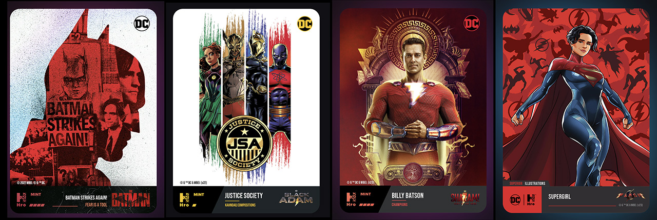 Most of the art was repurposed from existing DC comics but Hro created many special graphical compositions too, especially for the film subsets and some digital exclusive cards.