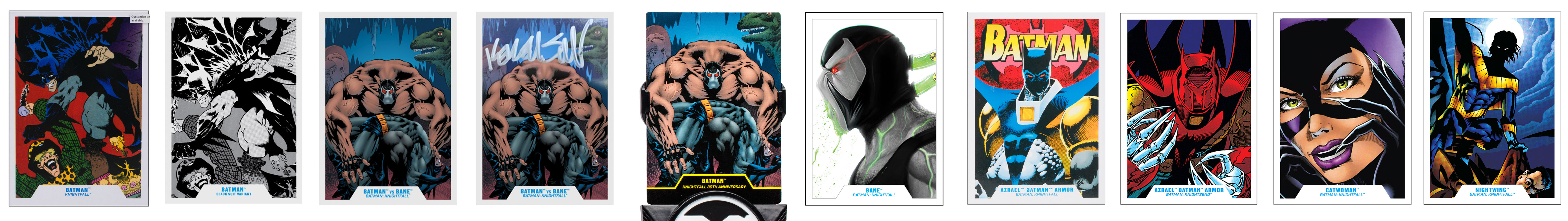Early Platinum waves featured figures painted in bronze, gold and silver. The cards with these figures were foil versions of the standard figures' cards (not "hologram"; same artwork). For example, the Batman and Joker figures for Arkham Asylum were issued as individuals, but also in 2-pack and Platinum editions. Those variant figures included foil card variants.