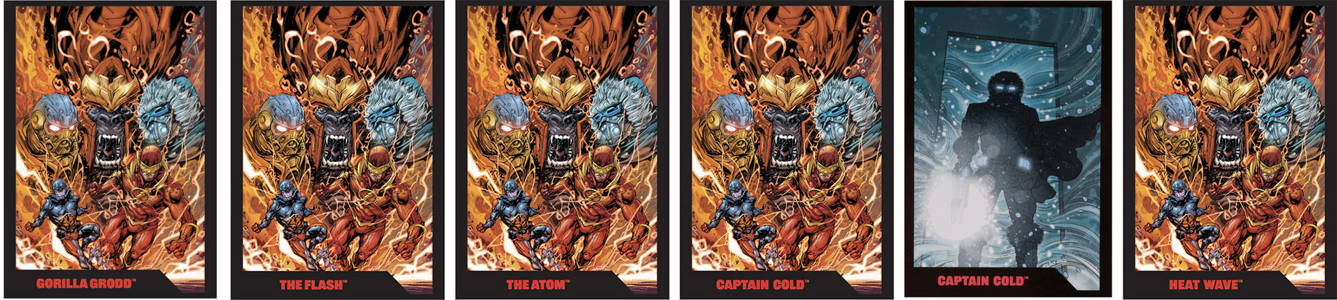 At first, the cards within each group all featured the same art (the comic book cover), but printed with each different characters' names. Later waves changed up the comic covers and cards to match the figure character (but not the comic interior).