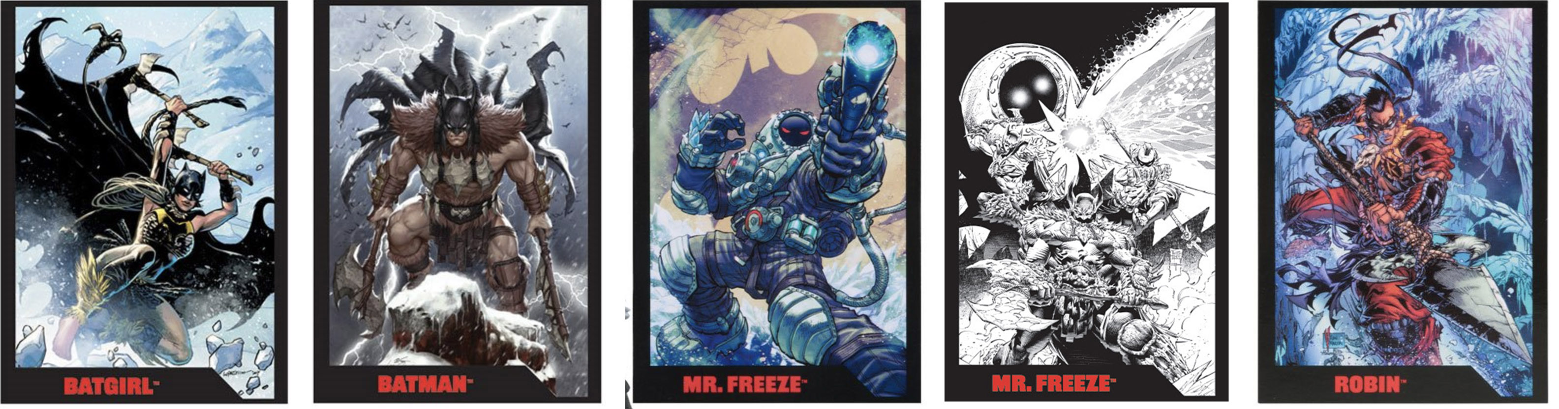 These figures were haphazardly painted with black-and-white and all were sold as Gold Label exclusives for Entertainment Earth. These were more expensive and thus the cards are rarer.