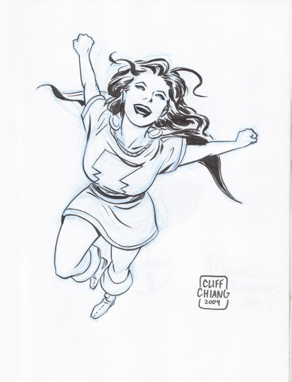 “The whole look of the book was off, including the green-and-white color scheme, which I am ashamed to say was my idea — I suggested it to Gene, which was a mistake, and he took off with it. There were just so many things that weren’t gelling about the character, and one weekend I woke up and had the idea to turn it into kind of a science fiction version of the Fawcett character.