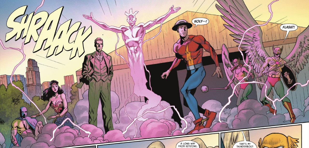Spring 1939: The Flash exonerates Joan Williams's father, Major Williams, of espionage charges. The Major learns that the Flash is Jay Garrick.