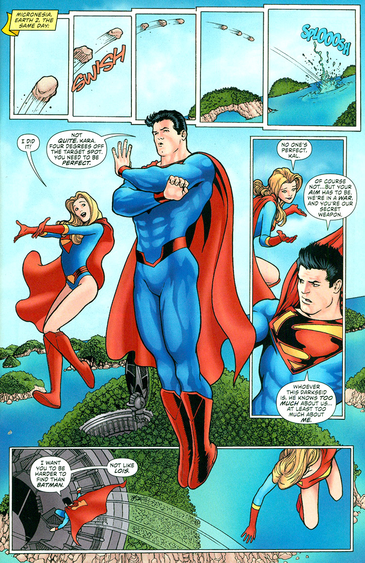 Supergirl in training. From Worlds' Finest #0 (2012); art by Kevin Maguire.