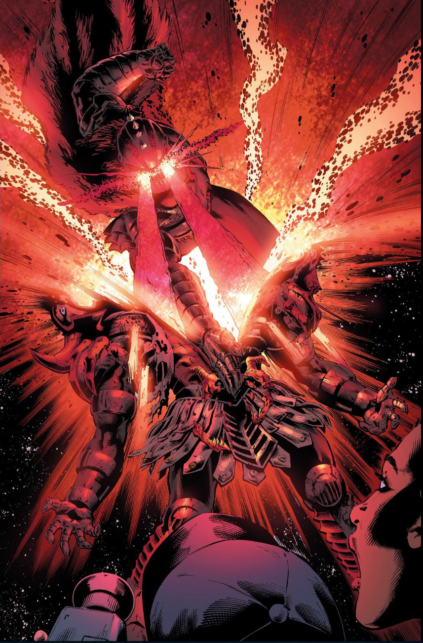 Brutaal kills Steppenwolf. From Earth 2 # (2014); art by Nicola Scott and Trevor Scott.