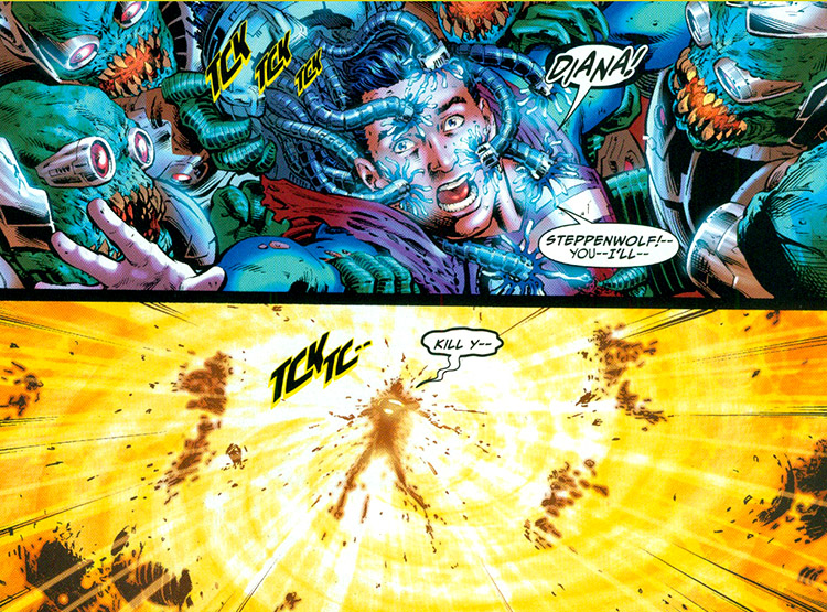 Superman actually survived the showdown with Steppenwolf, who retreated and took the Man of Steel's body. He was eventually granted refuge in the nation of Dherain and plotted his long game. One component of this was the kidnapping of Wonder Woman's daughter, whom Steppenwolf raised and crafted into a weapon. (Earth 2 #8)