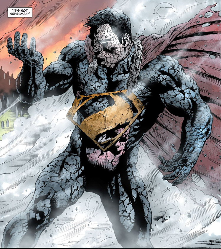 "Superman" is revealed as a Bizarro-like clone. From Earth 2 #26 (2014); art by Nicola Scott and Trevor Scott.