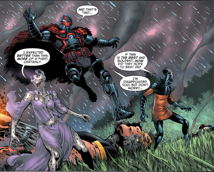 Brutaal and his brethren, Beguiler and Bedlam. From Earth 2 #15 (2013); art by Nicola Scott and Trevor Scott.
