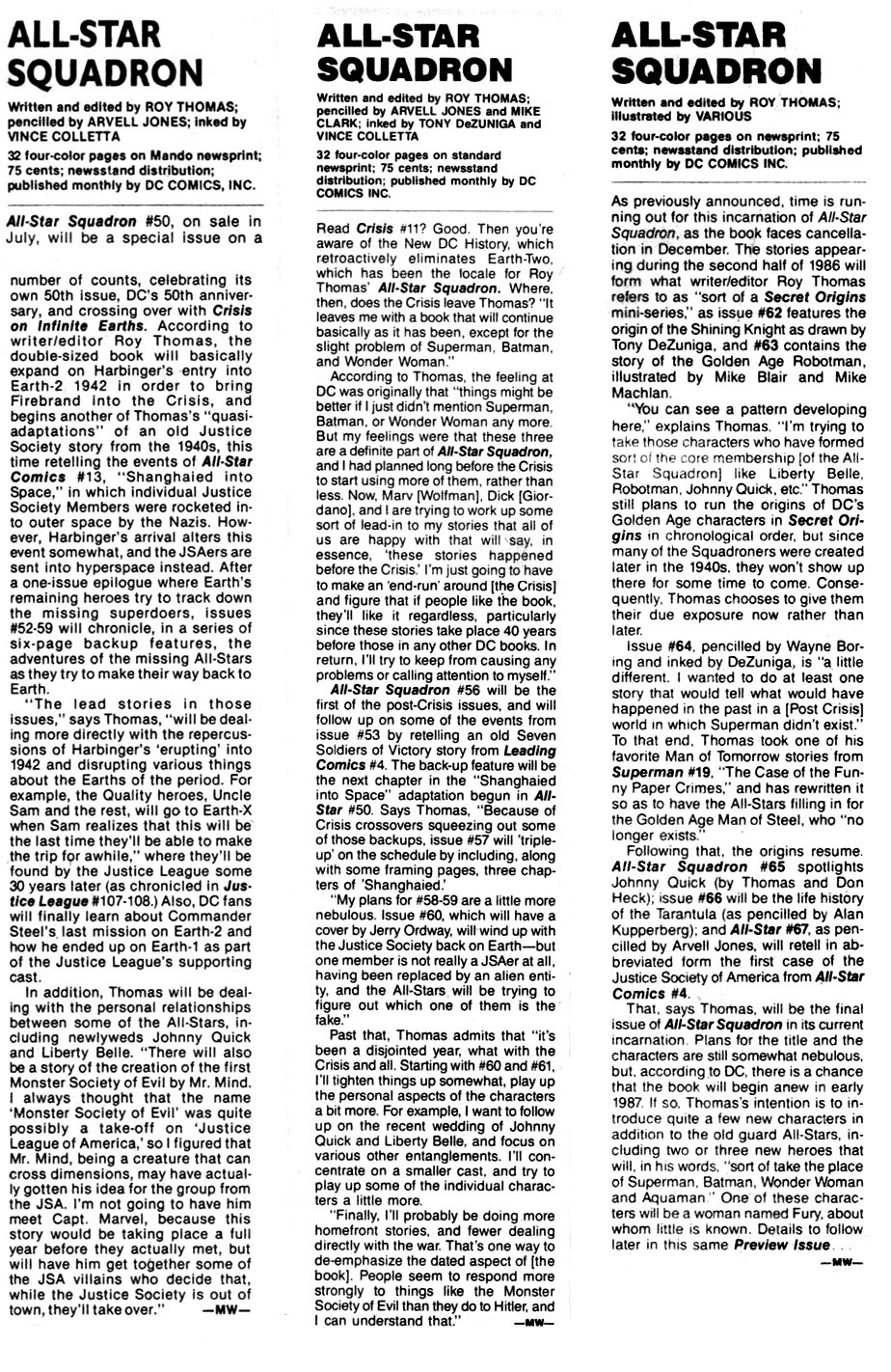 - Some origin stories printed in Secret Origins were originally planned for All-Star Squadron.