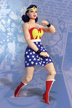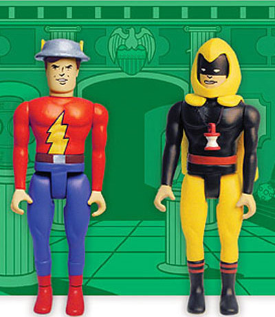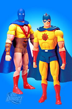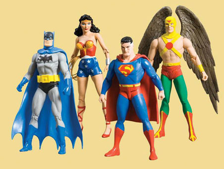 Super Squad Action figures designed by Phil Jimenez features Earth-Two versions of Batman, Wonder Woman, Superman and Hawkman. Each figure stands approximately 6" tall and includes character-specific accessories.
