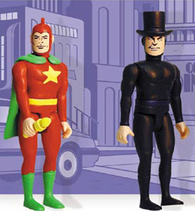 Special two-pack action figure sets include two full-sized figures – one based on art from the character's early appearances and the other based on art from the modern era. The figures stand at 6.5" and 6.75" respectively. One collectible trading card featuring each character will also be included in each package. All figures feature multiple points of articulation and include display bases and character-specific accessories. 4-color clamshell blister card packaging.