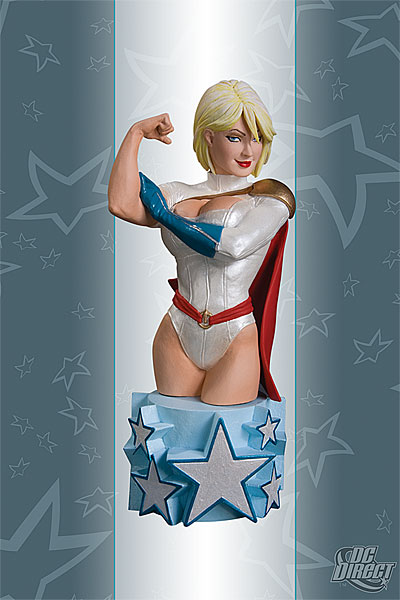 Women of the DC Universe: Series 3: Power Girl Bust The hand-painted, cold-cast porcelain bust measures approximately 5.5" high x 2.25" wide x 3" deep and is packaged in a 4-color box. Limited Edition. Manufactured to order. Designed by Amanda Conner |