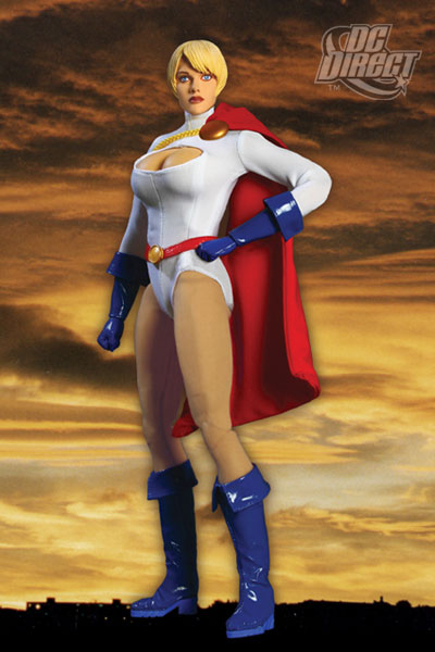 Power Girl (2007): Realistically proportioned, super-heroic 1:6 scale figures! This deluxe collector figure comes clothed in an authentically detailed fabric costume and includes a display stand. Packaged in a deluxe 4-color window box with a fifth panel. |