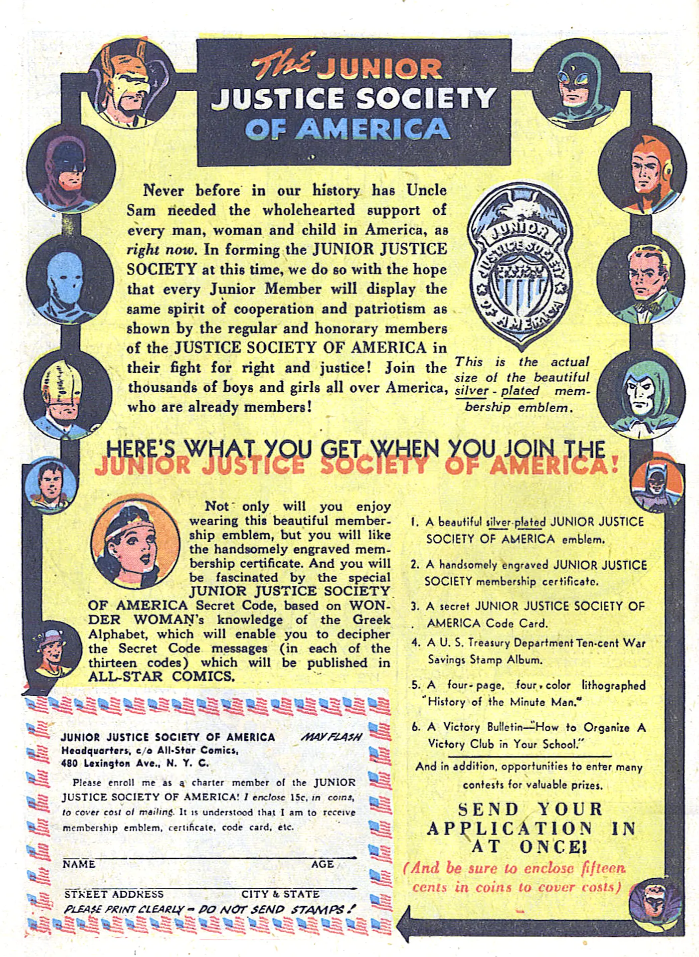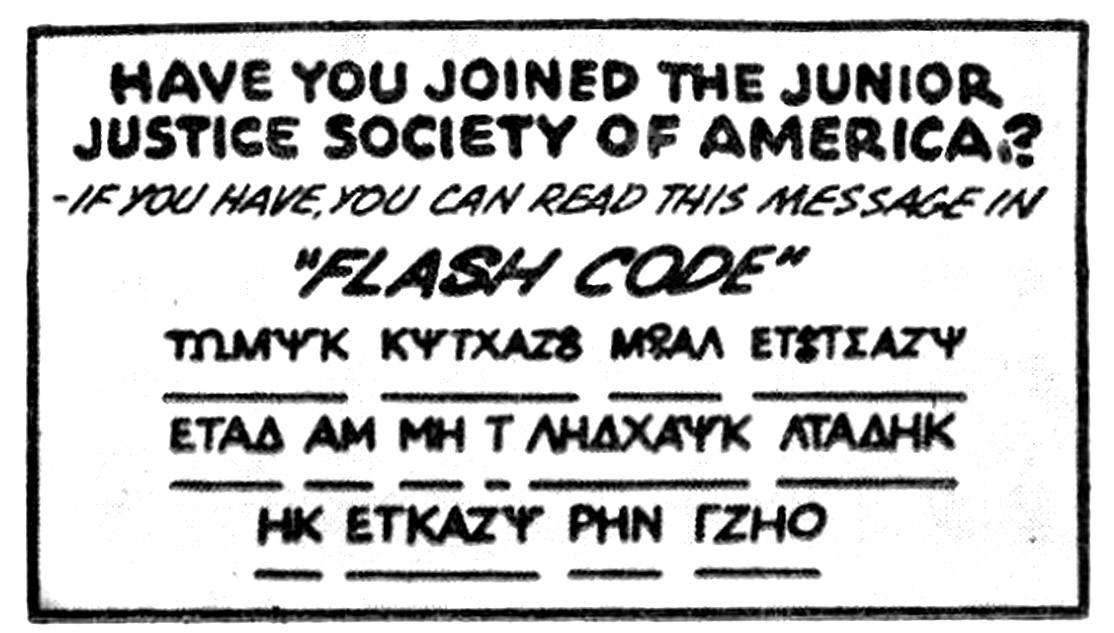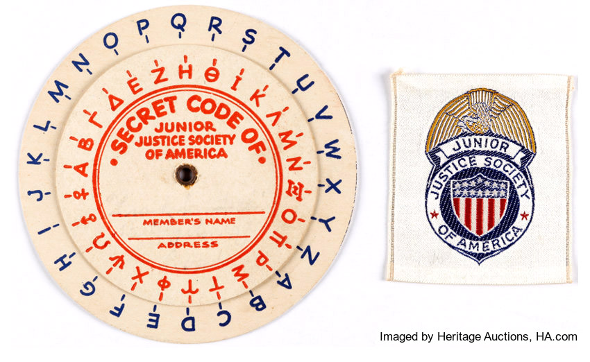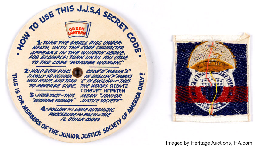 A rare collectible related to Golden Age comic books! DC created a club for kids called the "Junior Justice Society." If you sent in the form, they would send you a patch and decoder wheel that would help decipher secret messages inside the comic books.