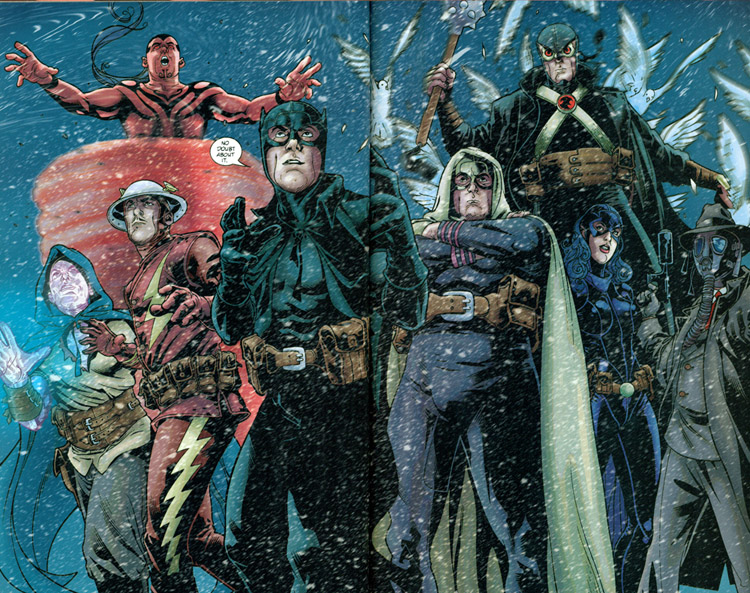 Another group of the 52 is the Boy Commandos, who appear in issue #4; Brooklyn and Andre are named. The Boy Commandos were created by Simon and Kirby, all the way back in Boy Commandos #1, 1942. The trade paperback reveals, in a memo by John Thunder (U.S. federal liaison to the 52), that Capt. Hop Harrigan and his men were another cell.