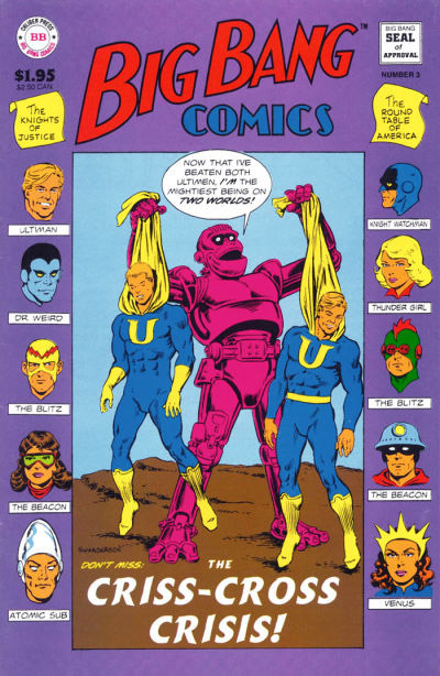 Big Bang #32 featured a story on the soon-to-be-released "Knights of Justice" television show. Real life models were posed for group pictures as Ultiman, Knight Watchman, Thunder Girl and Masker (Black Canary).