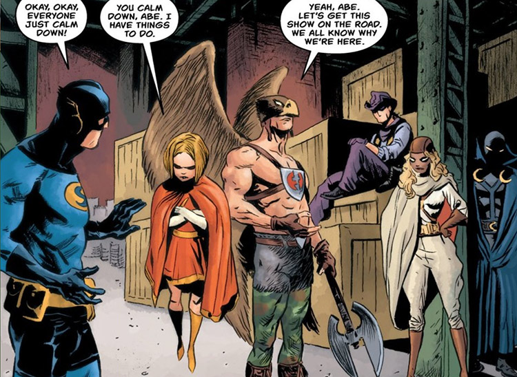 The Knights of Justice were unquestionably inspired by the JSA. Big Bang Comics specializes in printing nostalgic comics and many of their characters are based on DC and Golden Age archetypes. The Knights hailed from Earth B, while their younger successors, the Round Table of America (based on the Justice League), were from Earth A.