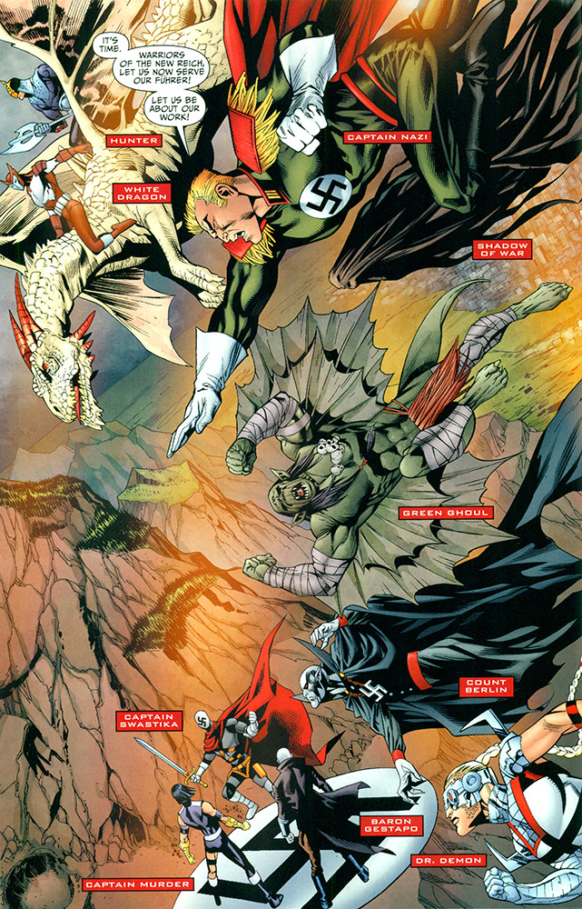 Vandal Savage • Baroness Blitzkreig •  Captain Nazi •  Rebel • Reichsmark •  Swastika