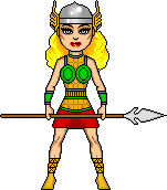 • Gudra (aka Gundra) was a true Valkyrie of Norse folklore, brought to Earth by Hitler and the mystical Spear of Destiny. She possessed superhuman strength and rode a winged horse, Stormwind. As a Valkyrie she has the power to remove the soul from a dead person's body. (The Valkyries of Norse legend were "choosers of the slain," who brought the souls of heroic warriors slain in battle to the other-dimensional realm of Valhalla.) Gudra carried a shield and was a master swordsman. The touch of her lance could kill—and did; she slayed the Tigress (Young All-Stars #23)
