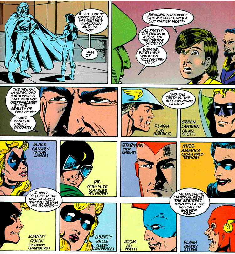 Damage was built with the DNA of the JSA and the JLA! From Damage #15 (1995); art by Bill Marimon and Don Hillsman.