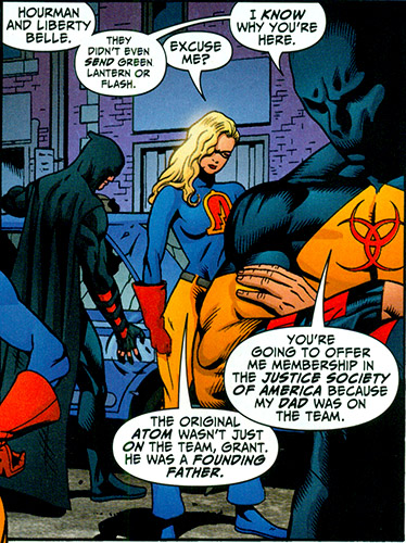 Chip firmly on shoulder. From Justice Society of America vol. 3 #1 (2007); art by Dale Eaglesham and Art Thibert.