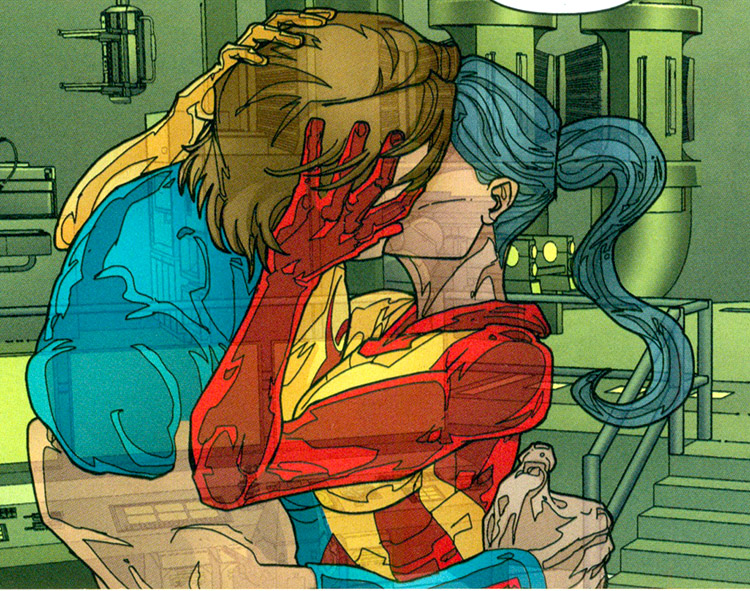 Sonia's first kiss with Damage. From Blackest Night #4 (2009); art by Ivan Reis and Joe Prado.