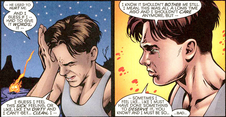 The Titans went through several more incarnations, and when the group reformed under the mentorship of its original five members, Arsenal nominated Damage for membership. (The Titans #1) Grant bonded with fellow teen Titans, Argent, over their experiences working with Arsenal. (#2)