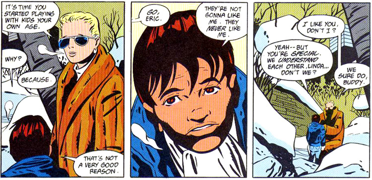 After Kent Nelson, the original Doctor Fate, died, during the Kali Yuga, a new host was chosen for the power of Fate. This was ten-year-old Eric Strauss. Strauss was a precocious introvert, an old soul in a young body as his stepmother, Linda Strauss, described him. Linda had married Eric's elderly father for his money. She quickly learned why Eric's mother had committed suicide; life with the old man was hell. After he died of cancer, Linda became obsessively protective of the boy, who all his life had received visions of the Lords of Order.