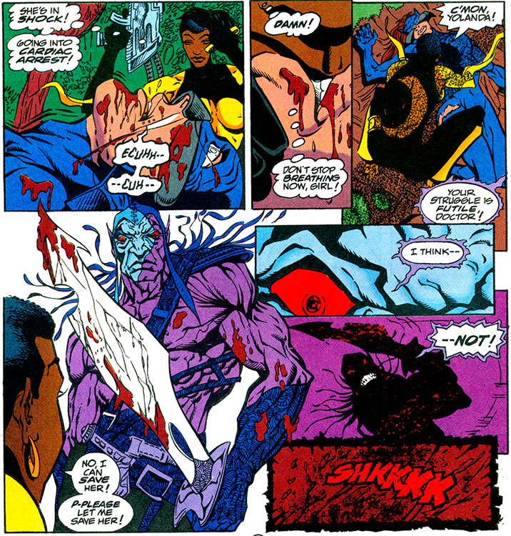 In Portsmouth, Mid-Nite found a trail of victims that led to a vampire-like creature called Mircea. (#23) Cross found that A39—the same drug that altered his own physiology—was responsible for Mircea's condition. (#24)