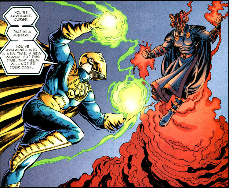 The new Doctor Fate also joined a loose-knit group of mystical heroes who called themselves the Sentinels of Magic. They played a key role in in the battle between Heaven and Hell, when the demon Azmodel tried to take control of the Spectre. (Day of Judgment #3–5)