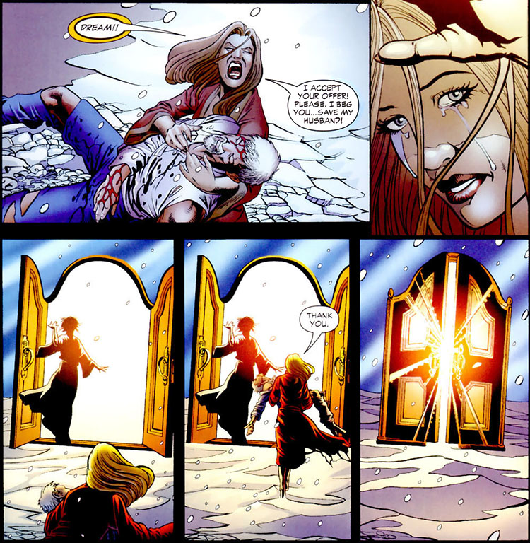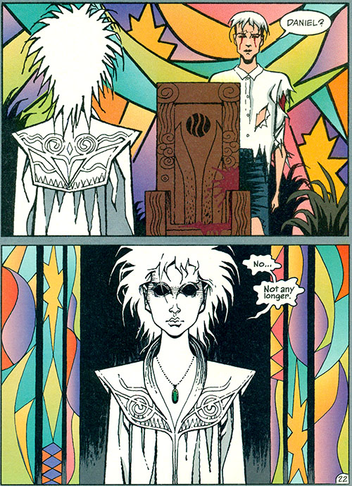 When the eternal called Dream returned to reclaim his kingdom, he sent Hector on to the afterlife and returned Lyta to the waking world. (Sandman vol. 2 #12) Lyta subsequently gave birth to their child, a boy named Daniel. (#22) Daniel was claimed by Dream and groomed to become the new incarnation of Dream (II). (#69) Lyta was traumatized by the loss of her son and for a time she wandered. She traveled to Athens to meet the Furies. (Sandman Presents: The Furies)