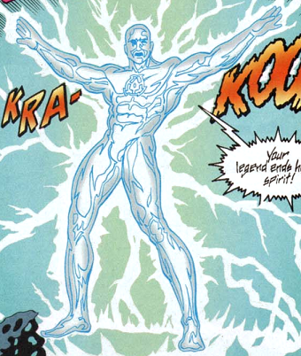 Will Power could turn himself into a living thunderbolt, a being of brilliant blue energy. While in this state, he could project blue energy and bolts of lightning, and make thunderous noise. Will could "power up" into his superhuman form as long as he was not too fatigued, and he could change back to normal at will.