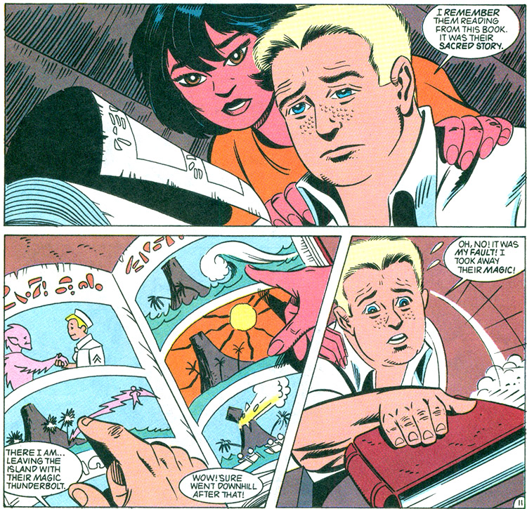 Johnny Thunder survived the JSA's battle with Extant during Zero Hour, but the team disbanded again. (Zero Hour #3–1) Shortly afterward, William Twotrees had a vision of Johnny clashing with Kiku over control of the Thunderbolt before admitting that he was William's father. However, since that vision was part of a warped alternate reality created by the villain Modrus, the veracity of that account is not entirely certain. (Primal Force #12) When Primal Force disbanded soon afterward, William again set out in search of his father, suggesting that he was not convinced it was Johnny. (#14)