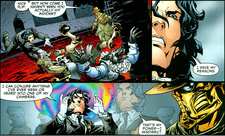 In addition to his magic, King Chimera has supremely trained senses and total recall. He once exhibited control over other-dimensional demonic creatures. It's unclear whether this was an illusion.
