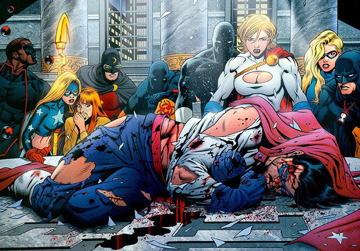 Trey Thompson's tragic end. From Justice Society of America vol. 3 #1 (2007); art by Dale Eaglesham and Art Thibert.