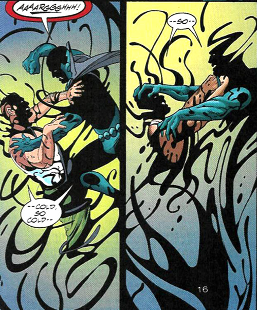 When Obsidian sensed a hostile presence, he shut off access to JSA headquarters. His father thought he'd gone crazy again and disabled Todd's barrier, which allowed the evil ghost of Kung to enter. (#27)