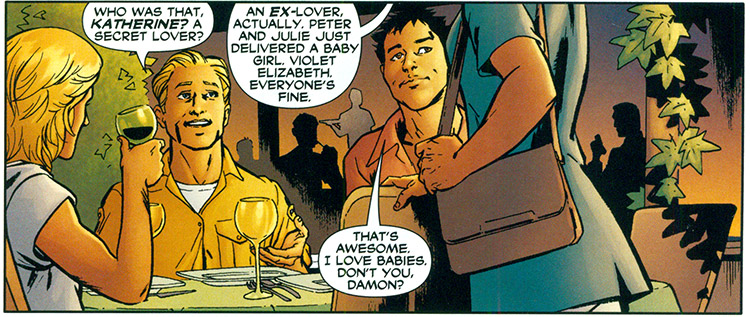 NOTE: At the conclusion of the Manhunter series, the story jumped ahead many years and showed that Todd and Damon had two children, Jen and Alan. (#37-38).