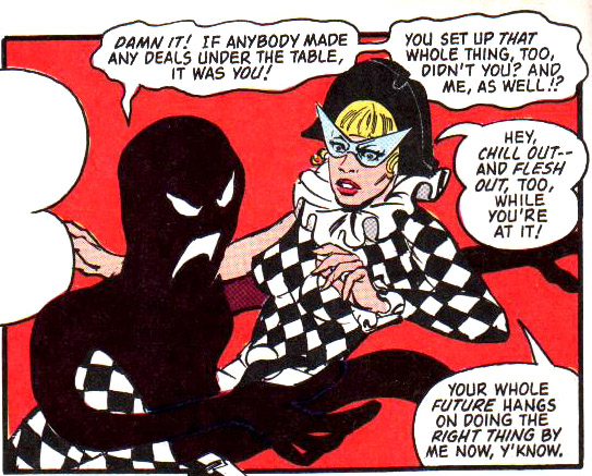 When Infinity disbanded, Jade and Obsidian stuck together for a while, helping Superman (Superman vol. 2 #46) and running afoul of the mind-boggling maze of Mister McEscher. (Showcase '93 #7)