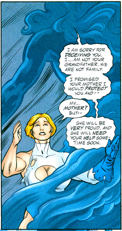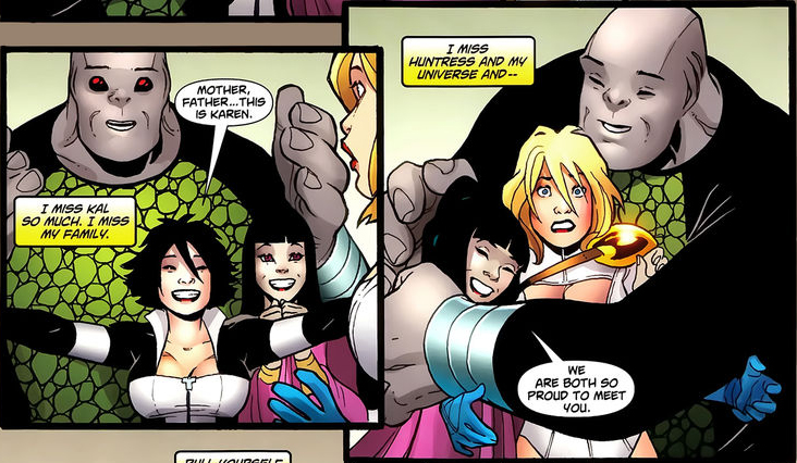 After years of loneliness, Power Girl eventually rediscovered her true past — and family — when reality was altered again. From their home outside of normal reality, her cousin Kal and Lois had witnessed events on the new Earth, but could not leave their "heaven" to intervene.