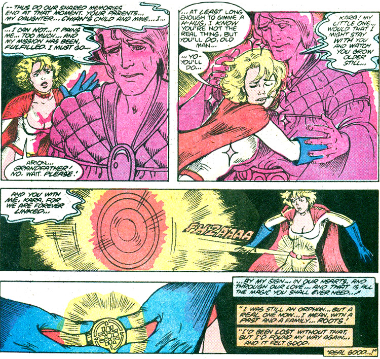 A new origin story was created for Secret Origins #11 (Feb. 1987), explaining that she was the time-tossed granddaughter of Arion, Lord of ancient Atlantis. The reinvention failed to resonate with creators or fans, as the character's Kryptonian identity was too strong. It was easier to ignore issues about her heritage and focus on the present.