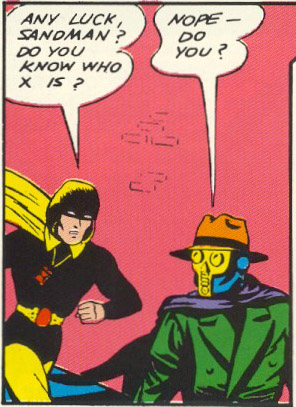 When "The Hour-Man" (Rex Tyler) was introduced in Adventure #48 (Mar. 1940), the Sandman lost his cover spotlight. The Hourman's debut was woven into S.M.T., with Tyler and Dodds meeting as civilians, then discovering that each had an alter ego. (S.M.T. #29-32) This story was surprisingly faithful to Hourman's origin story in Adventure #48.