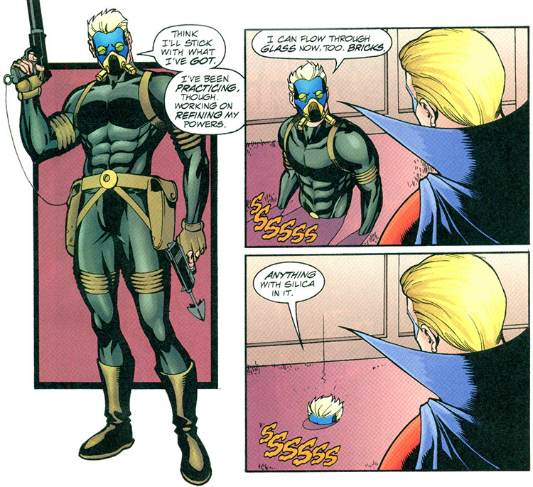 Before his transformation into the silicoid monster, Sandy was also a normal human. Since then, however, he can change his body (which is now silicon-based) into any form. He can also use this ability to travel through the earth.