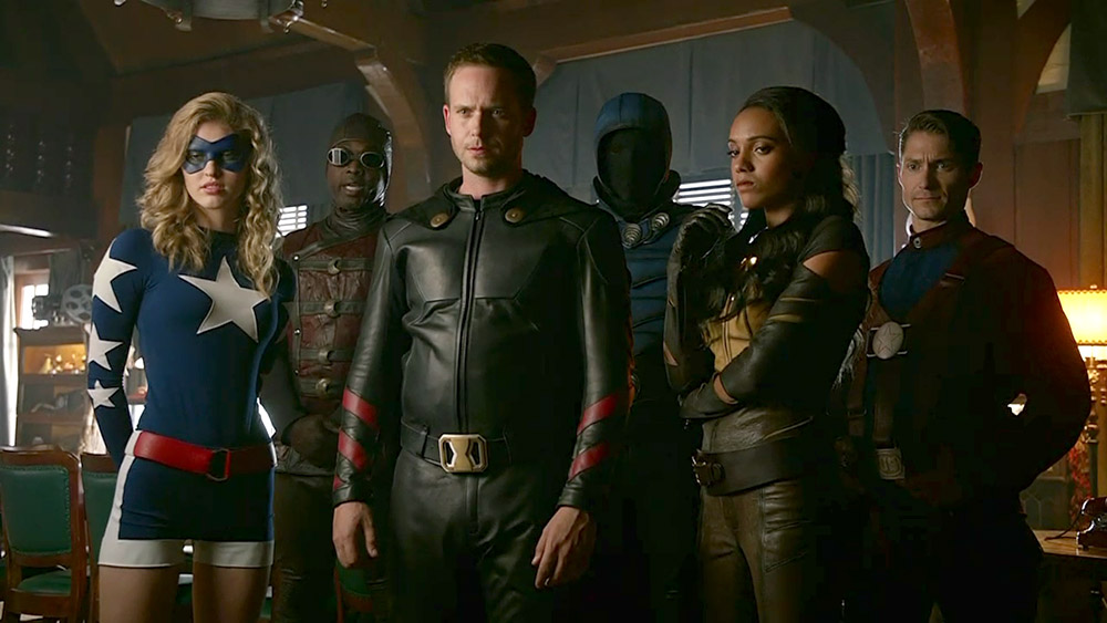 The Justice Society captures the Legends, believing them to be Nazi spies. Nate meets his own grandfather, Commander Steel. The fight with Baron Krieger and Eobard Thawne ends in Hourman's death. Also appearing: Dr. Mid-Nite, Stargirl, Obsidian, and Vixen. - DC's Legends of Tomorrow, Season 2, Episode 12, "Camelot/3000" (21 February 2017).