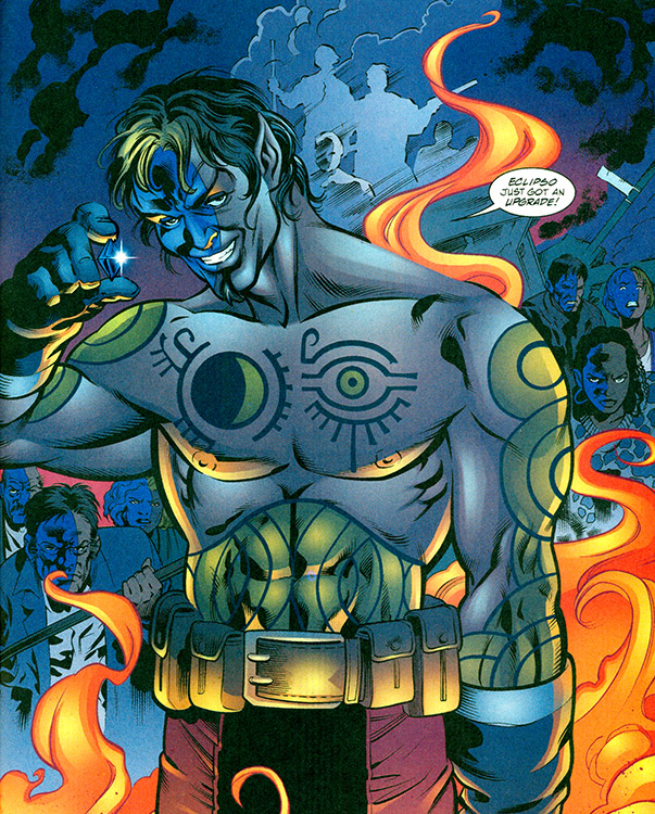 Once Alex Montez acquired all of Eclipso's diamonds (#49-50), he took the name Eclipso (II) and joined a rival team formed by Black Adam's rival team. (#52) This of course led to a confrontation with the JSA where a stray blast from Eclipso killed his lover, Nemesis. The tattoo that bound Eclipso within Alex was also severed and Alex's hold on Eclipso wavered. He committed suicide in grief of his actions. (#58) Ted delivered the sad news to Alex's parents just as he had to Yolanda's. (#59)