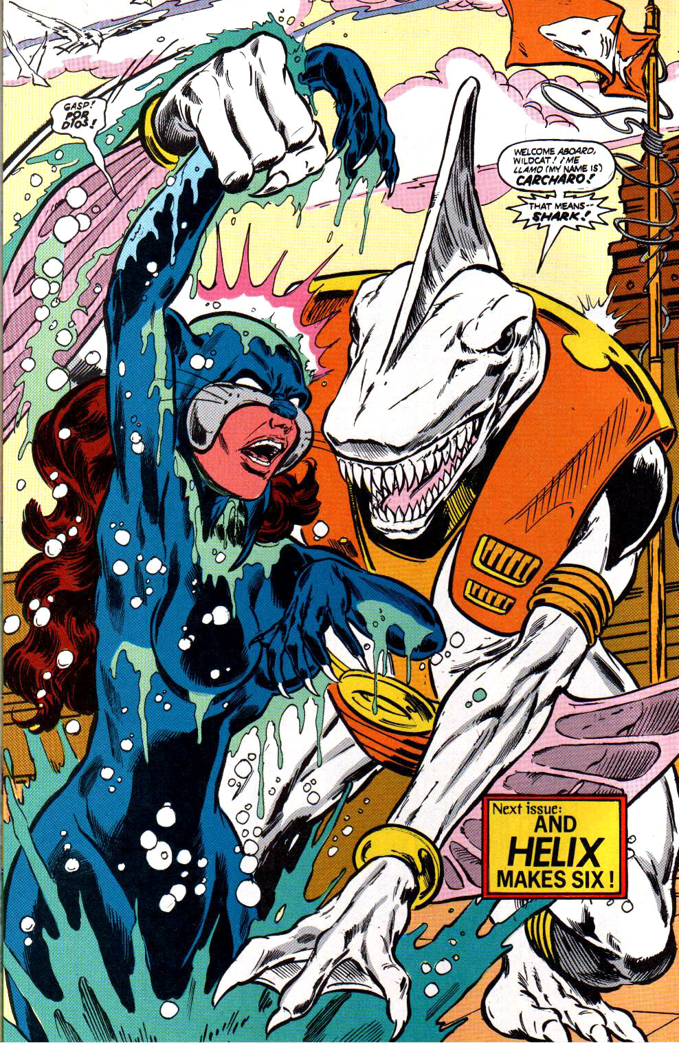 In her time with the team, Yolanda learned that her metahuman prowess was a product of the same genetic experiments that created the group called Helix. Another child from this group, Carcharo, was in fact Yolanda's cousin. (#26) Yolanda stayed with the group until it disbanded, following their leader, Skyman's, death. (#31) Wildcat went into semi-retirement, concentrating on her professional career as a reporter for the magazine Rock Stars.