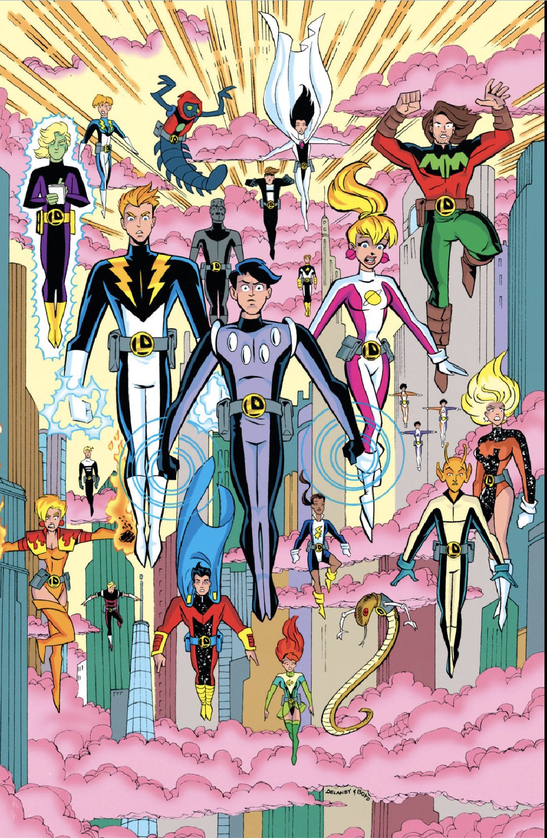 Pinup from Legion of Super-Heroes vol. 4 #100 (Jan. 1998); by John Delaney and Ron Boyd.